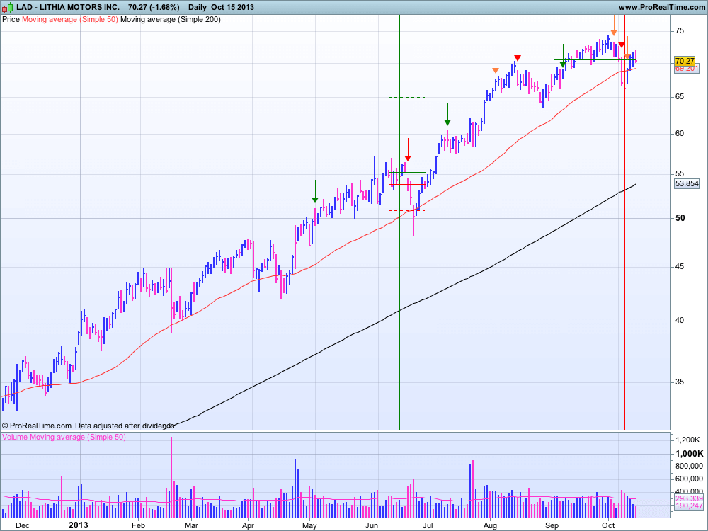 Je continue l’analyse de mes trades passés depuis début mai et ma critique de CAN SLIM. J’ai passé ces trades en appliquant la méthode d’investissement CAN SLIM. On a vu lors de la partie précédente les premiers trades qui couvraient PRAA, LL, FRGI, NSM et GMCR. Voilà donc la deuxième partie avec les trades sur ALK, DDD, AMBA, CBOE et LAD.
