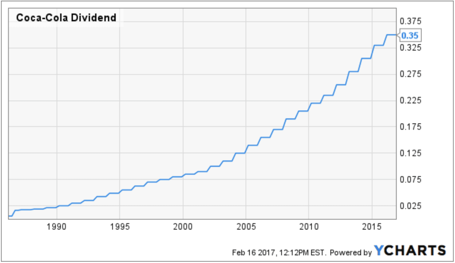 En revanche, voici ce qui s’est passé sur les paiements de dividendes de Coca sur la période :